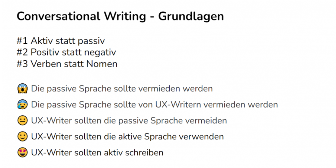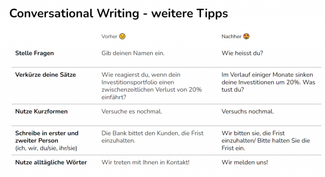 Weiter Tipps für Conversational Writing haben wir im Kurs besprochen - erinnerst du dich?